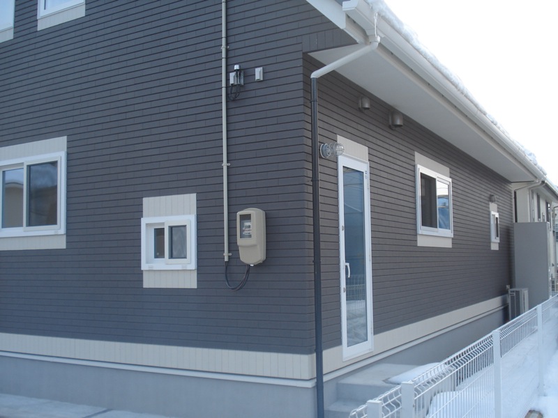 錦ヶ丘3丁目の賃貸物件のご紹介です。ヒルサイドアウトレット前を過ぎてすぐの立地で住宅が並ぶ閑静な環境。ゆるやかな段状になっている敷地に建っています。外観は大屋根と外壁がシックな黒で統一され、モダンな印象です。間取りは4LDK+ランドリールーム、広さ139.25平方メートル(約42坪)、車2台分の駐車スペース、オール電化、ヒートポンプ式のパネルヒーター(4台)など。建築されたのは2010年10月、現在、(2012年3月)まだ築1年5ヶ月…。新築同然ですね。11帖強のLDKをはじめ、1階は家族の寛ぎを育む、ゆったりとした間取り。2階はプライベートの時間を過ごすユーティリティを備えた3つの洋室という内容です。もちろん、南向きですので、日当たりは申し分ないと思います。