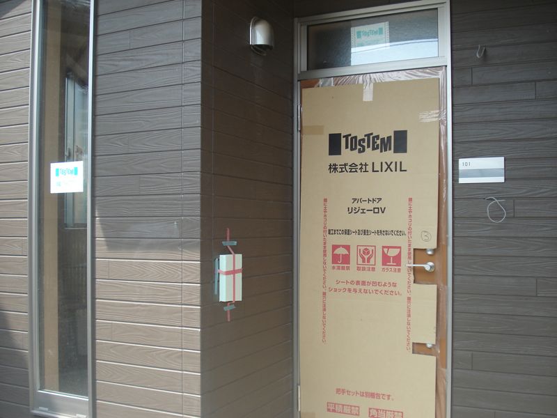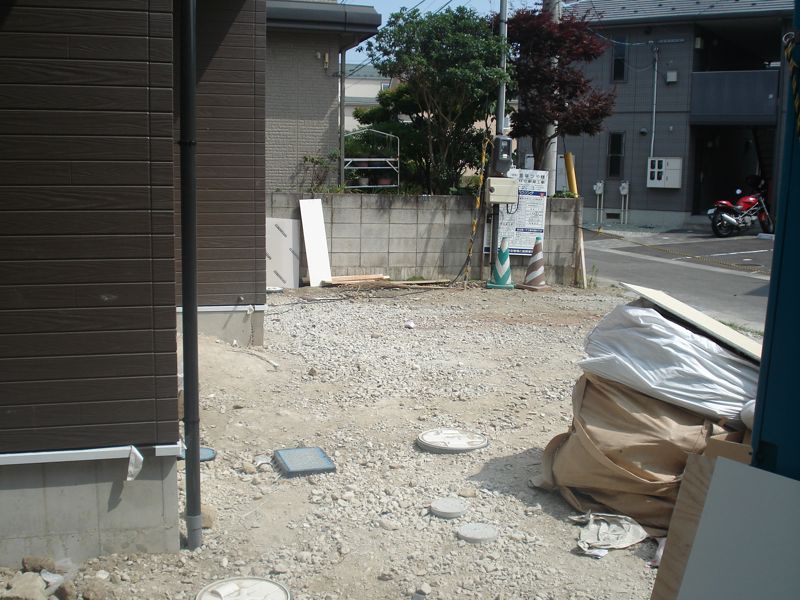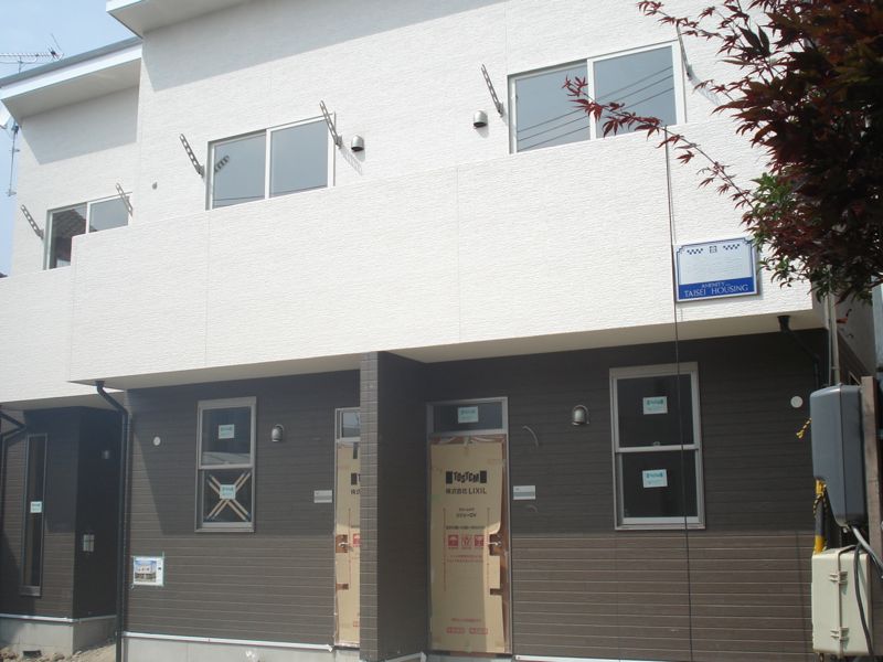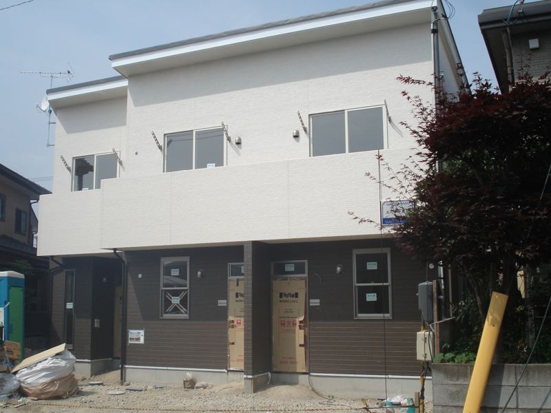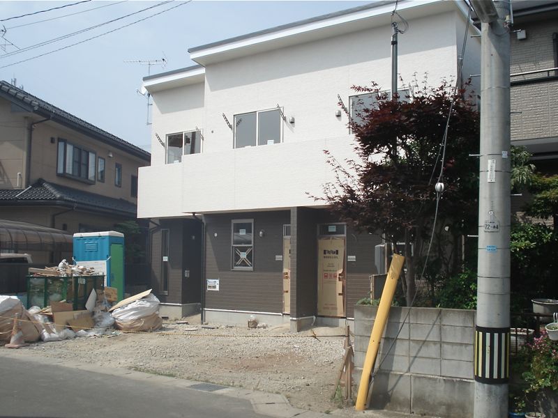 若林区荒井字堀添の住宅地のなかに1LDKの賃貸アパートが建てられていると聞き、さっそく訪ねてみました。広い荒井ですが「堀添(ほりぞえ)」は七郷小学校の西側ある一画で、一戸建てやアパートが並ぶ静かな雰囲気のエリアです。どのくらい工事が進んでいるかと、心配と期待が混じった気持ちでしたが、外観はほぼ完成の状態。7月下旬現在、内装や電気工事などが行なわれている様子でした。入居予定日は(2012年)10月上旬ですので、かなり順調な工期の進み具合だと思いました。今回から3回に分けて不定期ですが、この新築アパートの魅力に迫ってみたいと思います。