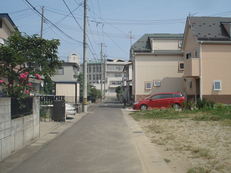 外観からは大きめの一戸建てにも見えるのですが、近づいてみると2枚、いや左側にもう1枚、計3枚の玄関ドアがあります。間取り図を見ると縦割り、つまりメゾネットタイプの3戸の賃貸物件で、右と真ん中はAタイプ、左側はBタイプで1階居室、2階のLDKいずれもAタイプとは形が異なっています。予定されている家賃はAタイプ、Bタイプとも72,000円。他に毎月の管理費が2,000円。敷金2ヶ月・礼金1ヶ月で、家賃には駐車場1台分が含まれています。まだ外観と周辺の写真しかお見せできませんが、なかなか期待を感じさせてくれる賃貸です。今ならAタイプorBタイプを選ぶこともできそうです。気になる方はお早めにお問い合わせを。
