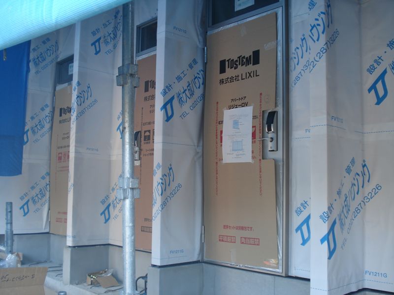 間取り図をご覧ください。いずれも1LDKで、1階3戸+2階3戸の計6世帯。大きなLDKと広めのウォークインクロゼットの間取りは少人数のご家族にぴったり。家賃は69,000円〜73.000円(敷金2ヶ月・礼金1ヶ月・管理費2,000円)です。駐車場1台分の料金が家賃に含まれているのはなかなか魅力です。設備はウォシュレット、TVドアホン、デジタルキー、浴室乾燥機など。対面型のキッチンも和やかな時間をつくってくれそうです。建築の方はかなり順調で、間もなく覆っている青シートも取れそうな感じです。(写真は2012年12月下旬現在のもの)春まで待てない方、気になる方は大成ハウジングまでご一報を!