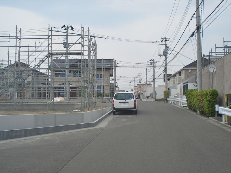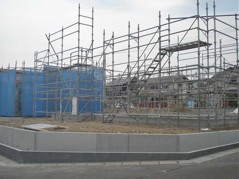 さて、建築が進められている現場は幹線道路からわずか数十メートル住宅街に入ったところ。北・東・南の三方向を生活道路に囲まれ、高台かつ角地です。余裕ある敷地の北側に2棟、南側に3棟のレイアウトで、南側の3棟、中でも西側の棟から工事が進められていました。建築されるのは、全て平屋建てで3LDKの間取り(広いLDK+洋室3部屋)。追焚給湯・ウォシュレット・TVモニターホン・BSなどが標準装備されています。この仕様で人気のエリア、そして新築となれば、家賃102,000円(敷金2ヶ月・礼金1ヶ月・管理費500円)という設定も当然でしょうか?2台が停められる駐車スペースも確保されています(駐車料は家賃に含む。)。富谷町上桜木や明石台近辺で、戸建て賃貸を探している方には見逃せない物件です。ぜひ、早めの電話をお待ちしています。