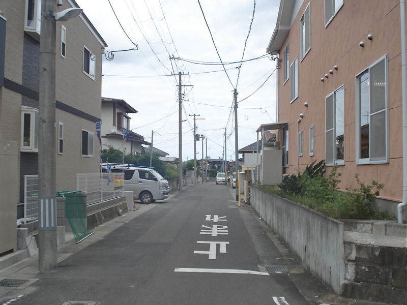 前回紹介の物件の角を曲がったすぐのところに建設中のアパートの紹介です。写真でお分かりの通り、完成直前(2013年10月中の完成・11月上旬ご入居可予定)ですが、建築前から人気があるようで、4世帯中、3世帯はすでに借り手が決まっています…。駐車場の高さよりも建物の土台が少し上がっている様子が写真で分かりますでしょうか?周囲の建物よりも少し高いため、風通しや日当たりは良好だと思います。当然ですが、周辺環境は前の物件と同様、お店関係はマックスバリュ仙台南光台店や七十七銀行南光台支店、泉南光台郵便局、スポーツクラブのルネサンス南光台やみやぎ生協南光台店などがご近所。静かな住宅地ですが、快適さや便利さを備えた立地だと思います。