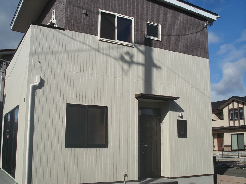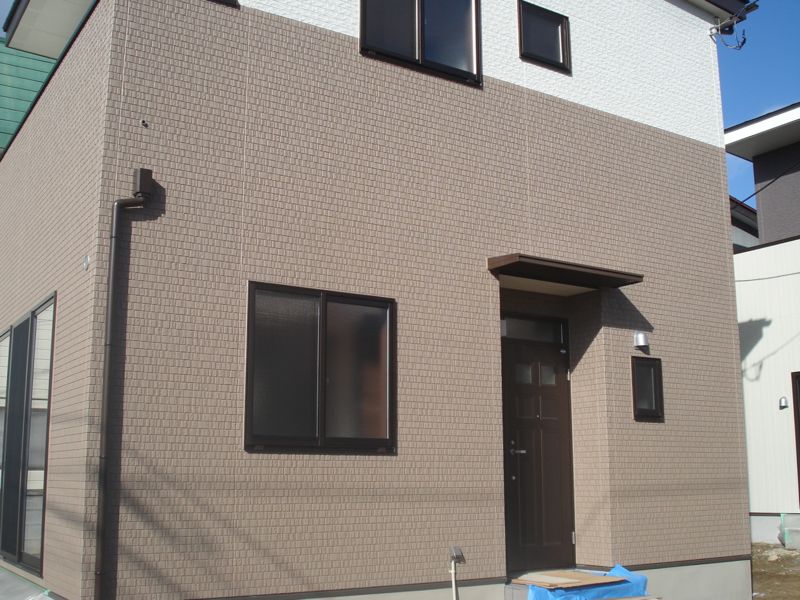間取りは1階が12帖の広いLDKに浴室・洗面・トイレなどの水周り関係。2階は6.2帖の洋室が2間と大きめバルコニーが付帯しています。壱番館・弐番館共通で2LDKとなります。(参番館は反転タイプ)設備は追焚給湯・エアコン・ウォシュレット・BS・TVインターホンなど。間取りも設備も使い勝手の良さそうな内容です。駐車場も普通車+軽自動車計2台分程度でしたら大丈夫なスペースが確保されています。(但し、車種要確認・縦列の可能性有り)家賃は83,000円(敷金2ヶ月・礼金1ヶ月・管理費1,000円)という設定。写真は1月初旬現在のもので、外構等はこれからという状態です。入居可能日は(2014年)1月下旬予定。興味のある方はぜひ、お早めに大成ハウジング本店まで連絡をお願いいたします。