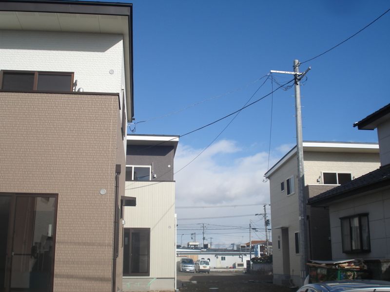 賃貸一戸建てが3棟同時に間もなく完成ということで上飯田に行ってきました。場所はフレッシュフード沖野店のすぐ南側。八幡神社の並びになります。幹線道路から少し入った位置なので静かな環境です。近くには広瀬川緑地が広がり、4号バイパスもすぐ近く。なかなかの好ロケーションです。ここに新築。しかも2階建ての戸建てが一挙に3棟、間もなく完成〜ご入居できる予定になっています。