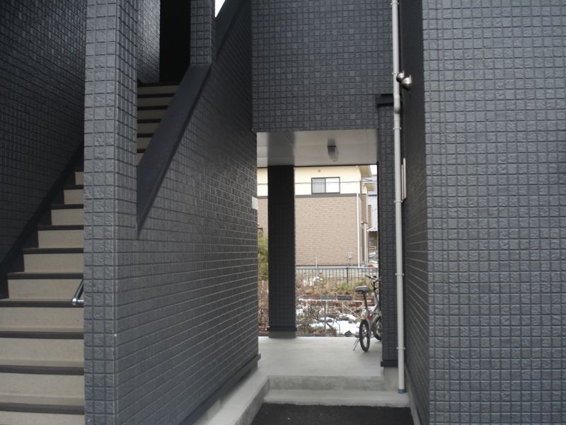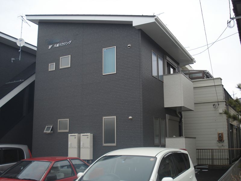 JR古川駅から徒歩約10分、荒川小金町に建つ、シャープな外観の賃貸アパートです。外壁の材質や黒を基調としたカラーからは力強さも感じます。大きな屋根がセンター部分で分かれていて、1階に2室、2階に2室の計4室。仙台圏ではなかなか見つからないタイプの賃貸です。古川は賃貸界では先進エリアかもしれません。建てられたのは2013年3月ですから、築まだわずか1年という築浅物件です。(2014年3月現在)