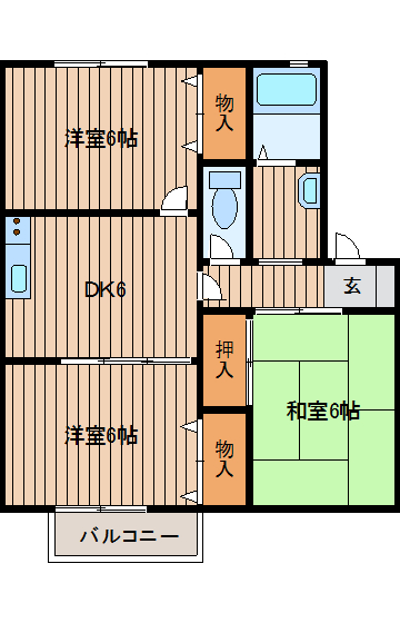 今回も先回、先々回と同じ小稲葉町に建つファミリー向きアパート。今回は敷地も先回の2LDKアパートと同じで外観や設備、家賃、建築年等に大きな違いはないのですが、間取りは3DKで、この点がいちばんの相違点でしょうか。最近、2階の1室(角部屋)に空きが生じたのことでご案内させていただきます。間取りは中央に6帖DKを配し、6帖の洋室がその上下に、南側に独立性のある6帖の和室があります。昨日2LDKは小さなお子さまのいるご家庭に、今回の3DKはそろそろ個室が必要なお子さまのいるご家庭にぴったりな間取り。ここ数回、繰り返していますがこの界隈は学校やお店が近いため、古川エリアでは住みやすさはトップクラスだと思います。