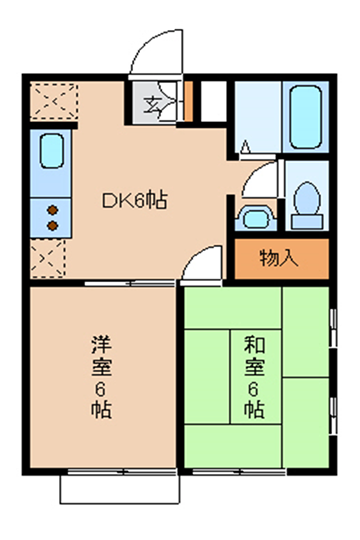 間取りは6帖洋室+6帖和室+6帖DKに浴室、トイレ、洗面の2DKタイプ。