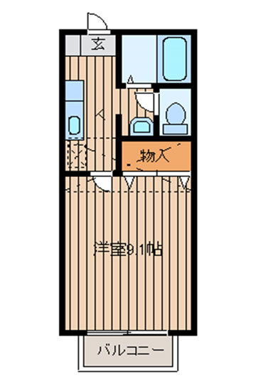 間取りは9.1帖の洋室+キッチン+洗面+トイレ+浴室のロフト付きワンルーム。