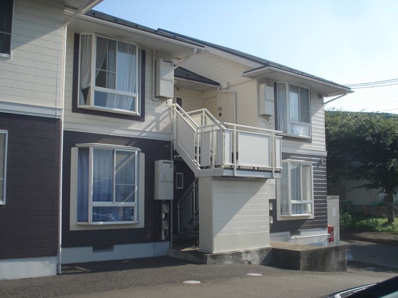 「物件、どの辺りかなー。」と地図で確かめると鶴ケ谷の北、4号バイパスの手前のエリアが「泉区南光台東」でした。主に住宅や集合住宅で占められていますが、エリア内には南光台東小学校と南光台東中学校があります。今回の物件は南光台東中と道路を挟んですぐ、道路と駐車場に囲まれている敷地に建っています。郊外ゆえでしょうか、素人目に見ても駐車場広め、建物大きめで、街中によくある、せせこましい雰囲気がありません。(2017年)9月末にこのアパートの1階部分の1室が空室予定です。